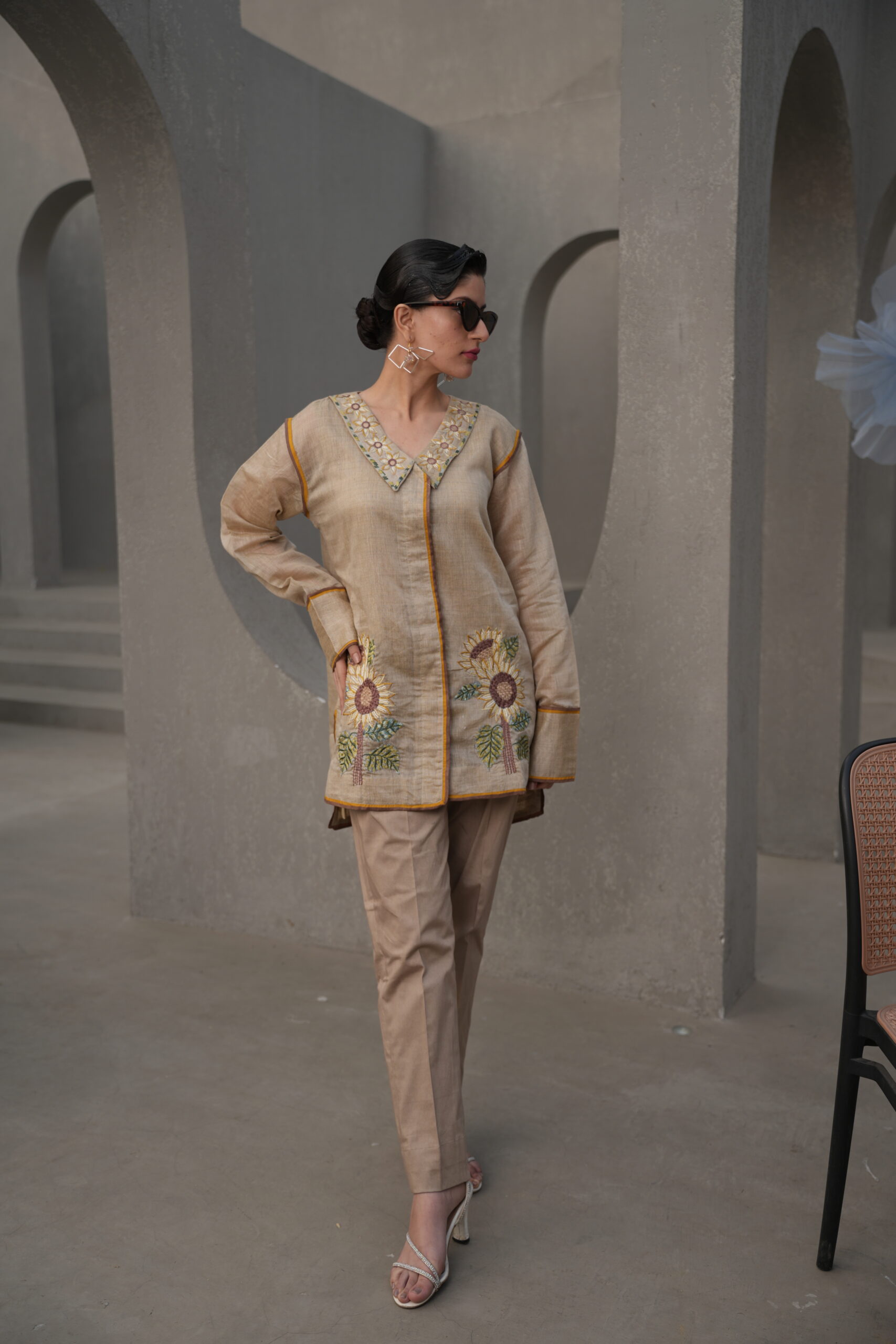 Crafted from breathable mul linen, this co-ord set is designed for effortless elegance. Its lightweight fabric keeps you cool, while the modern silhouette adds a touch of glamour, making it perfect for all your summer affairs. Whether you’re heading to a brunch or an evening soirée, this ensemble ensures you stay stylish and comfortable.